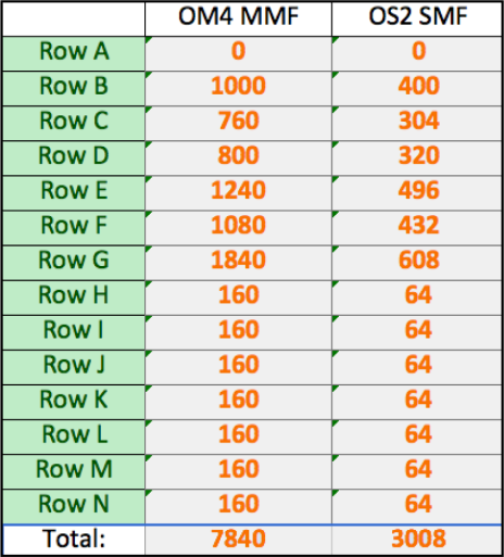 Detailed level breakdown of the number of fibers, media types, source to destination locations, quantities, etc. This helps in calculating patch panel ports, optimizing space, and enhancing standardization.