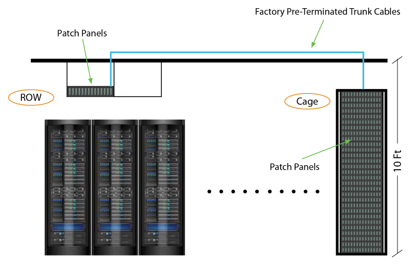 Our Turn-Key Infrastructure Cabling Solution offers a custom configured kit with pre-terminated fiber trunks and patch panels required to build the data center infrastructure.